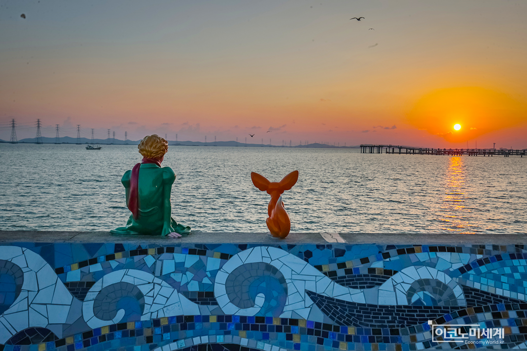 | ▲ 시흥시 거북섬 어린왕자 일몰스폿, 여우와 함께 일몰을 바라보고 있다. |