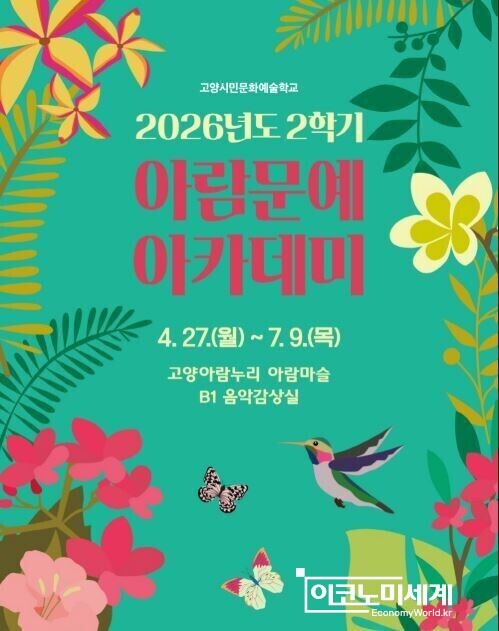 고양문화재단은 오는 27일부터 7월 9일까지 ‘예술과 인문으로 채우는 사유의 시간’을 주제로 ‘2026년도 2학기 아람문예아카데미’를 운영한다고 밝혔다. 이번 프로그램은 고전 철학부터 음악·미술·문학·영화까지 폭넓은 분야를 아우르는 8개 강좌로 구성됐다.