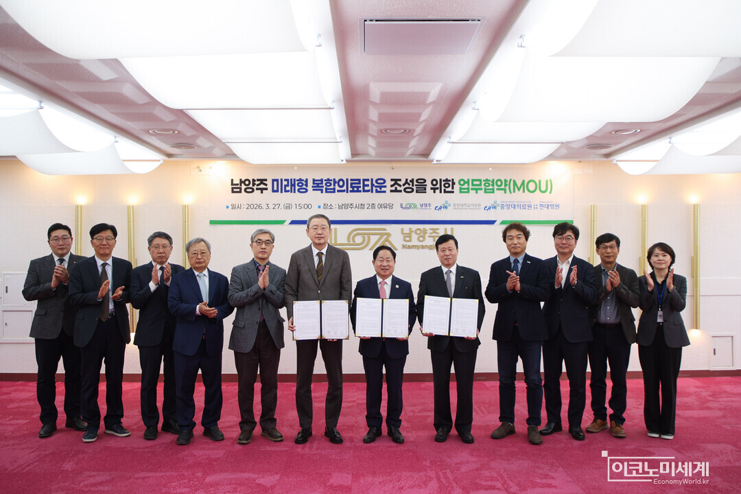 남양주시는 27일 시청 여유당에서 중앙대학교의료원, 현대병원과 함께 ‘미래형 복합의료타운’ 조성을 위한 업무협약(MOU)을 체결했다고 밝혔다.