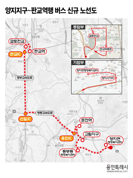 경기도는 최근 ‘2025년 경기도 광역 공공버스 도내 간 신설 노선’ 심의를 통해 양지지구를 출발해 고림동과 둔전역을 거쳐 판교역까지 운행하는 신규 노선을 선정했다. 해당 노선은 직행좌석버스로, 총 6대의 차량이 투입돼 하루 30회 운행될 예정이다.