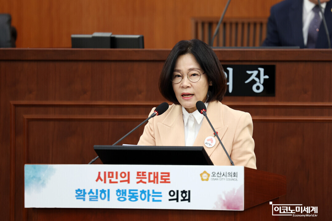[이코노미세계] 동탄 생활권 확장과 각종 대규모 개발사업의 부담이 왜 오산시민에게만 전가돼야 합니까. 오산시의회 본회의장. 제298회 제2차 정례회에서 송진영 의원의 7분 자유발언은 단순한 문제 제기를 넘어, 인접 도시 개발 구조 전반에 대한 근본적 질문을 던졌다.