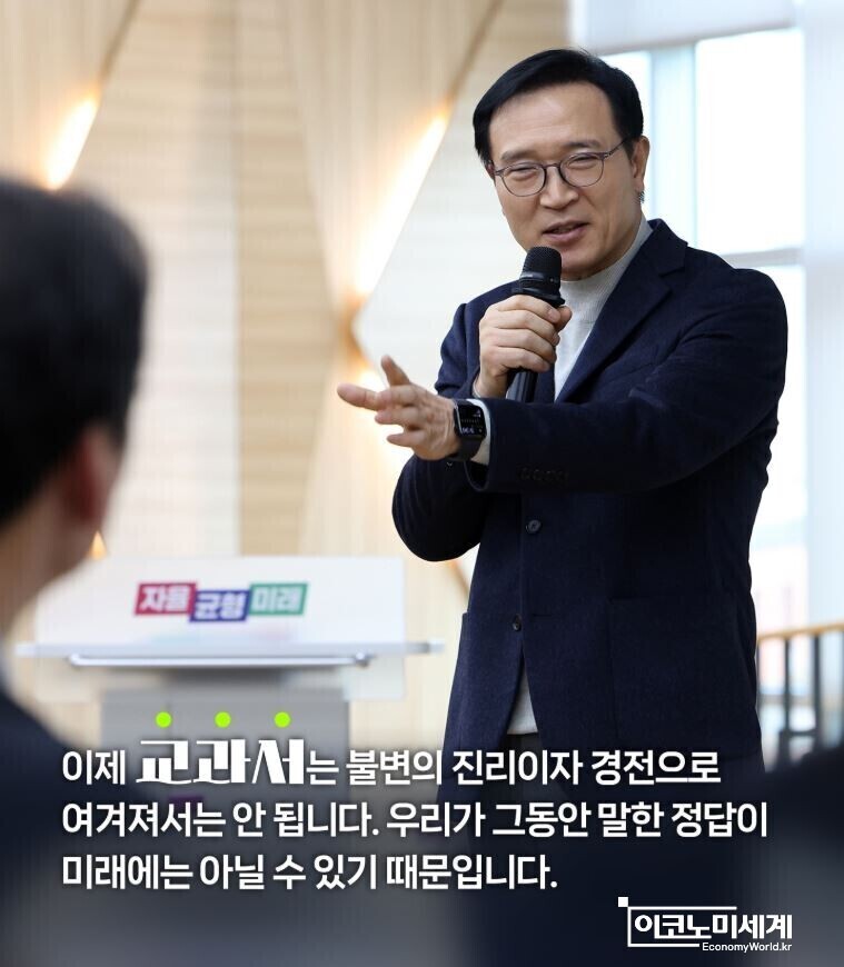 [이코노미세계] 교과서는 불변의 진리도, 닫힌 경전도 아니다. 경기교육의 수장이 교과서를 향해 던진 이 한마디는 단순한 수사가 아니다. 교실의 풍경과 수업의 방식, 더 나아가 공교육의 작동 원리를 다시 묻는 문제 제기다.