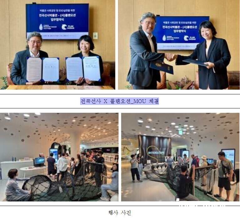 전곡선사박물관은 5월 28일 해양보전 시민단체 플랜오션과 업무협약(MOU)을 체결했다. 이번 협약은 박물관의 사회공헌 및 ESG(환경·사회·지배구조) 실천을 강화하기 위한 전략적 선택으로 평가된다.