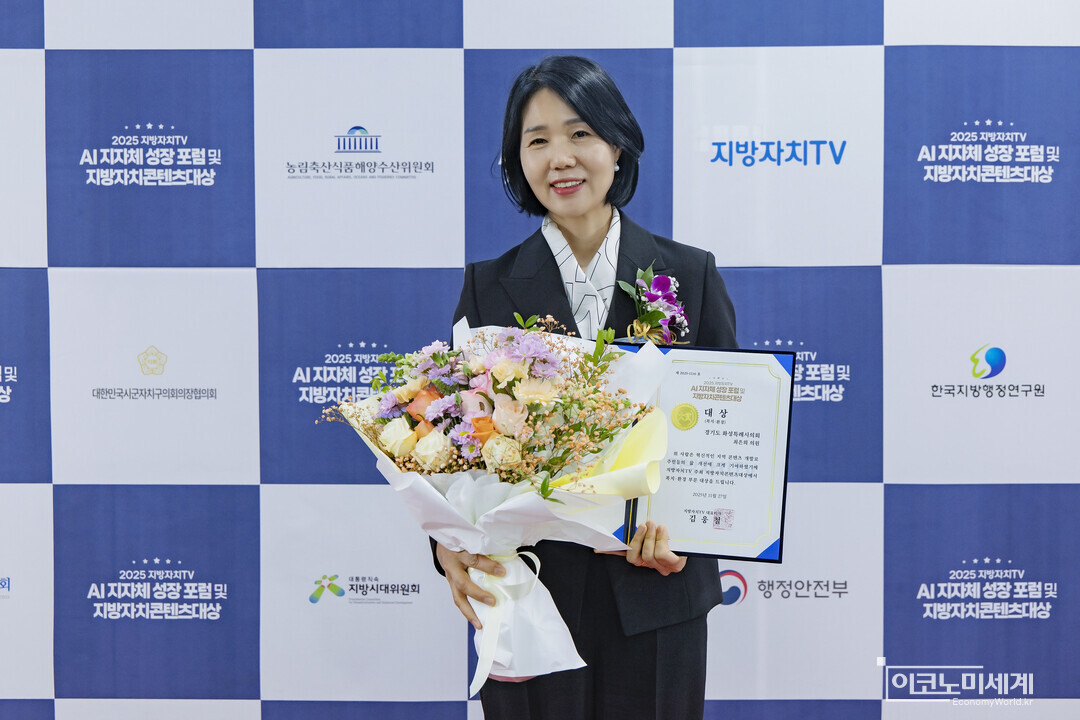 [이코노미세계] 11월 27일, 국회의원회관 대회의실에서 열린 ‘2025 지방자치콘텐츠대상’ 시상식. 그 자리에서 화성특례시의회 최은희 의원이 복지·환경 부문 수상자로 호명되자 방청석에서는 박수가 터져 나왔다.