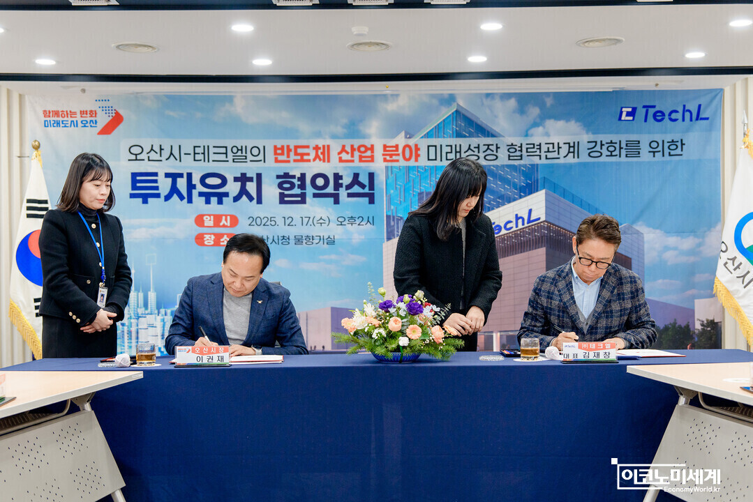 [이코노미세계] 경기 남부의 중소 도시 오산이 반도체 산업의 핵심 축 가운데 하나인 ‘후공정 패키징’ 분야 기업을 품으며 산업 구조 전환의 분기점을 맞고 있다. 오산시는 반도체 후공정 패키징 전문 기업인 테크엘과 본사 확장 이전 및 신규 투자 유치를 위한 협약을 체결했다고 밝혔다.