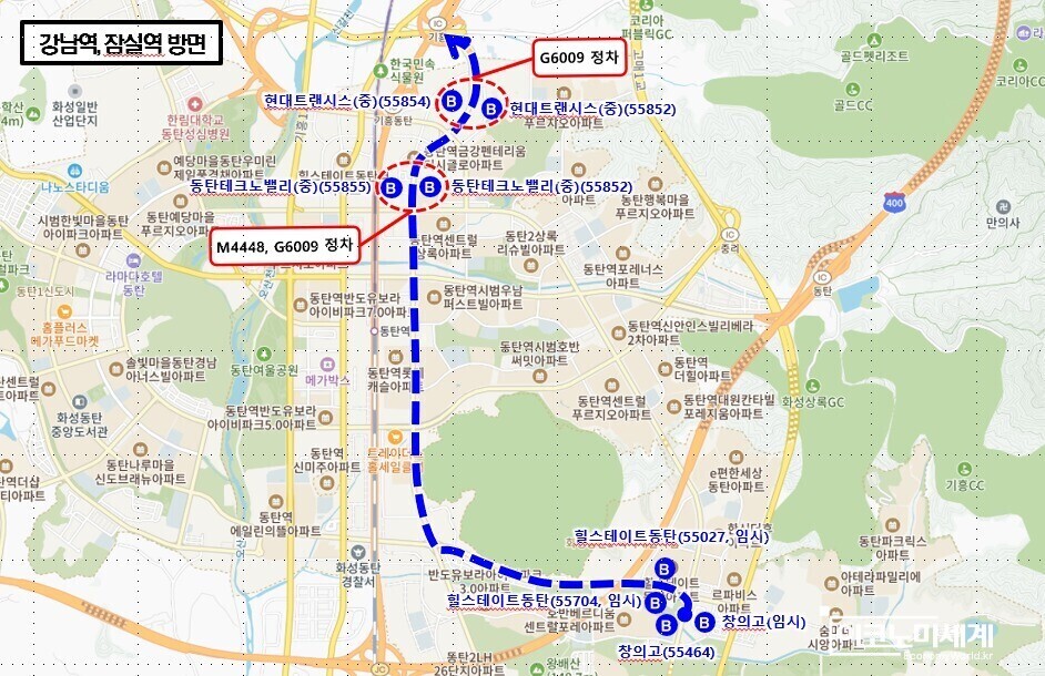 화성시는 현재 서울시와 협의해 광역버스 임시 운행이라는 응급 처방을 검토 중이다. 계획안에 따르면 목동 창의고 정류장과 청계동 예솔초 정류장을 출발해 강남역과 잠실역으로 향하는 노선이 임시로 운영된다. 노선별 2대씩, 총 8대의 버스가 투입되는 방안이다.