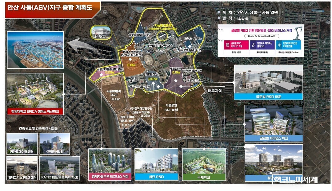 ASV 경제자유구역은 안산시 상록구 사동 일원 약 1.66㎢ 규모로 조성된다. 이곳은 한양대 ERICA 캠퍼스를 중심으로 경기테크노파크, 한국생산기술연구원, 한국산업기술시험원, 한국전기연구원 등 주요 연구기관이 집적된 수도권 대표 산학연 클러스터다.
