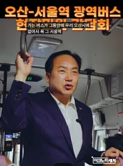 [이코노미세계] 이권재 오산시장이 출근 시간대 오산~서울역을 오가는 5104번 광역버스를 시민들과 함께 탑승해 직접 민원을 청취하며 현장 소통에 나섰다.