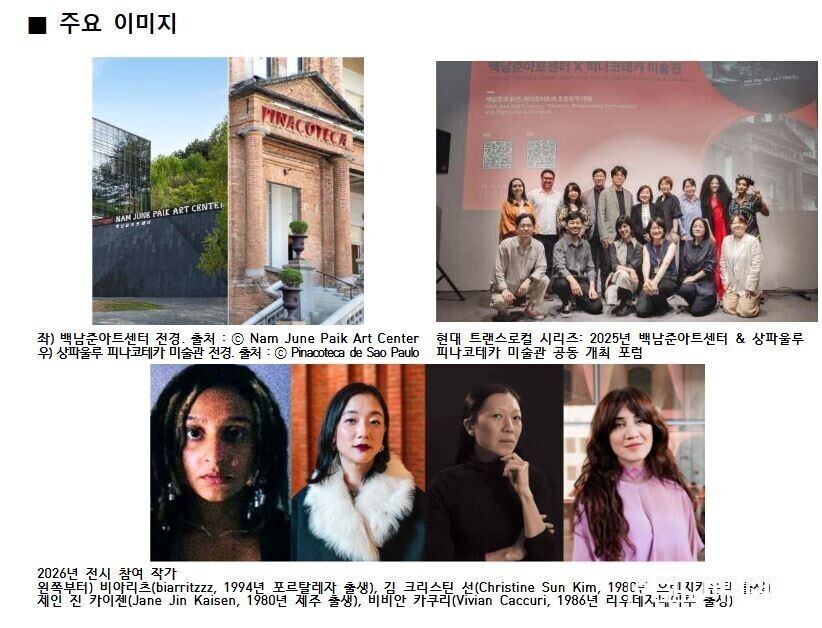또 다른 국제 협력 프로젝트도 준비돼 있다. 오는 11월에는 브라질 상파울루의 피나코테카 미술관과 공동으로 ‘현대 트랜스로컬 시리즈’ 전시가 열린다. 이 전시는 서로 다른 지역과 문화가 교차하는 도시 공간을 탐구하는 프로젝트로, 제인 진 카이젠 등 작가들의 신작과 함께 백남준의 대표작 '달은 가장 오래된 TV' 등이 소개될 예정이다.