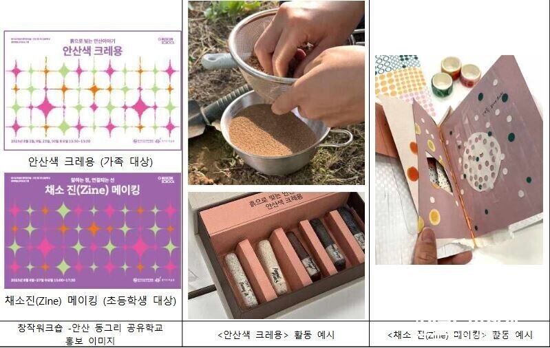 첫 번째 프로그램 ‘안산색 크레용’은 8월 2일부터 매주 토요일 4주간 진행된다. 참가자들은 미술관 주변에서 직접 흙을 채집하고 이를 활용해 비건 크레용을 만든 뒤 그림을 그린다. 흙으로 그려진 작품을 감상하고 지역 자연을 관찰하는 과정에서 지역 생태에 대한 이해를 높이는 것이 목표다.
